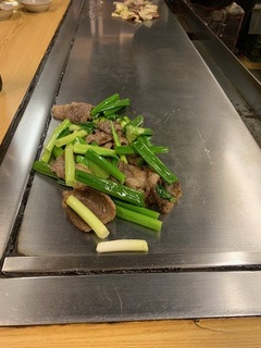 カウンターの前に鉄板があるので目の前で焼いてくれるのでそれを見ながら