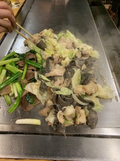 ホルモン、センマイ、コウネをキャベツと炒め特製のタレで頂くのですが
