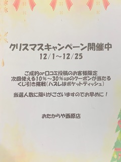 12月に入り寒くなりましたが西原店ではクリスマスキャンペーンとして