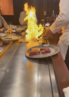 鉄板でお肉を焼くときに🔥ボワッと炎が上がる“お決まりの瞬間”には、思わずみんなで「おおー!」と歓声が(笑)大盛り上がり🙌