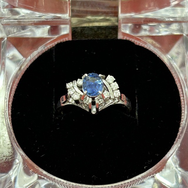 Pt900 メレダイヤ付き サファイヤリング